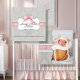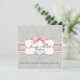 Numa paleta sutil e sofisticada de cinza pombo suave e rosa pastel, este Anúncio de Nascimento apresenta elegantes redemoinhos e floreios em estilo de caligrafia copperplate francesa ao fundo, floreios de texto, uma moldura em forma de suporte e um lindo laço de fita rosa pintado à mão, com uma borda de renda de cetim estilo franzido francês. Tudo feito a partir de arte original em aquarela pintada à mão por Audrey Jeanne Roberts. O resultado é um conjunto para bebê moderno e contemporâneo lindamente exquisito. No verso, há o mesmo padrão de damasco e um suporte que revela um espaço para a foto do seu bebê. Você pode facilmente adicionar sua própria imagem ou alterar as mensagens.