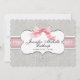 Numa paleta sutil e sofisticada de cinza pombo suave e rosa pastel, este Anúncio de Nascimento apresenta elegantes redemoinhos e rolos em estilo de caligrafia copperplate francesa ao fundo, floreios de letra, uma moldura em forma de suporte e um lindo laço rosa com aspecto de fita pintada à mão, com uma borda de renda de cetim estilo franzido francês. Tudo feito a partir de arte original em aquarela pintada à mão por Audrey Jeanne Roberts. O resultado é um conjunto para bebê moderna e contemporâneo. No verso há o mesmo padrão de damasco e um suporte que revela um espaço para a foto do seu bebê. Você pode facilmente adicionar sua própria foto ou alterar as mensagens. CORES: cinza pombo, cinza pewter, rosa suave e branco.