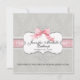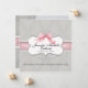 Numa paleta sutil e sofisticada de cinza suave de pombo e rosa pastel, este Anúncio de Nascimento apresenta elegantes redemoinhos e floreios em estilo de caligrafia copperplate francesa ao fundo, floreios de texto, uma moldura em forma de suporte e um lindo laço de fita rosa pintado à mão, com uma borda de renda de cetim estilo franzido francês. Tudo feito a partir de obra de arte original em aquarela pintada à mão por Audrey Jeanne Roberts. O resultado é um conjunto para bebê moderno e contemporâneo de beleza exquisita. No verso, há o mesmo padrão de damasco e um suporte que revela um espaço para a foto do seu bebê. Você pode facilmente adicionar sua própria imagem ou alterar as mensagens.