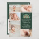 Este cartão de anúncio de bebê giro e caprichoso apresenta um arco-íris boêmico em verde e marrom com corações brancos sobre fundo verde-escuro. O texto combina o script manuscrito e as fontes serif para uma aparência na moda e moderna. Ele pode ser personalizado com as estatísticas de natalidade do seu bebê, como nome, tamanho, data e hora de nascimento e você pode mudar as fotos de modelo para as suas.