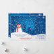 Envie saudações antecipadas de feriado e informe familiares e amigos do seu novo endereço com este cartão encantador. Ele apresenta um boneco de neve sorridente e uma paisagem urbana com muita neve caindo.