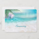Anúncio de Casamento na Praia | Tema de Casamento na Praia. Belas águas oceânicas límpidas e cintilantes brilhando à luz do sol, espuma de água branca na areia limpa da praia com uma folha de palmeira e flor rosa claro adornam o canto Casual ou formal, para um casamento na praia ou ilha de destino