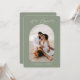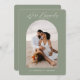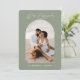 Convide seus convidados on-line com um código QR que os envia diretamente para seu site de casamento. Esta design de fotos contemporânea em verde-sábio com a frase "Estamos envolvidos" em um moderno roteiro de caligrafia manuscrito é um cartão de anúncio perfeito. Insira facilmente sua foto, nomes e URL do site de casamento para torná-la sua.