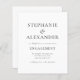 Orçamento Simplesmente Anúncio de Noivado de Texto. NOTA Há duas opções de papel a escolher para este tamanho (4,5 x 5,6") na faixa de Orçamento. Para este produto, eu recomendaria muito o semibrilho, que é um estoque de cartão de 110 gsm, semelhante em espessura a um cartão postal. A opção Satin é um papel muito mais fino, 80gsm. O padrão é definido como semirbrilho. As cores e o tipo da fonte podem ser alterados através do menu de edição. Você também pode alterar as cores de fundo em ambos os lados, se desejar.