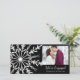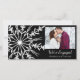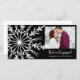 Ele propôs e você aceitou. Parabéns - agora você está noivo para se casar e é hora de contar ao mundo! Anuncie sua notícia com o elegante Cartão com fotos de anúncio do Noivado Black and White Snowflake de inverno. Este cartões de fotos de noivado de inverno personalizado elegante apresenta um intrincado design branco com floco de neve sobre um fundo preto. Perfeito para um noivado sazonal de dezembro, Janeiro ou fevereiro.