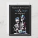 Revele sua história de amor de uma maneira deliciosamente macabra, porém encantadora, com nosso Anúncio de Noivado de Esqueleto Preto Personalizável. Com uma noiva e um noivo esqueleto caprichosos adornados com um chapéu alto azul-teal e flores, este anúncio é um aceno divertido para o amor eterno além das restrições da vida. O fundo preto profundo prepara o cenário para um toque de mistério, enquanto os acentos azul-teal infundem um toque de cor. Totalmente personalizável, este anúncio de noivado permite que você adicione seu toque pessoal, tornando-o uma maneira única e memorável de compartilhar a notícia do seu felizes para sempre.