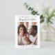 Cartão postal de anúncio de noivado minimalista moderno com sua foto, "O Começo do Nosso Felizes para Sempre" em uma mistura de tipografia simples e um script elegante e seus primeiros nomes na frente. No verso, personalize sua mensagem de anúncio de noivado e adicione nossos nomes em um script semelhante a uma assinatura.