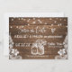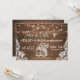 Este design apresenta um fundo de madeira rústica com luzes de corda penduradas, bela renda e antigos potes de pedra e flores. Personalize isso para qualquer ocasião, mas ótimo para um anúncio de noivado para um casamento country próximo!