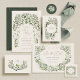 Nosso cartão de anúncio de noivado save the date apresenta letras em script elegante e elementos de jardim botânico verde-sálvia para a maneira mais bonita de anunciar seu noivado. Este item faz parte da nossa suite de casamento Tieghan T100, por favor, compre em nossa loja por produtos correspondentes.