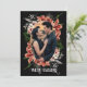 Anuncie o seu noivado com um cartão marcante e artisticamente elaborado que capture perfeitamente a sua história de amor. A frente exibe sua foto emoldurada por flores dramáticas em tons profundos e exuberantes contra um fundo escuro e sombrio, misturando elegância com um toque ousado. O verso convida amigos e familiares a se juntarem à sua jornada com um espaço para compartilhar a história do seu noivado. Este design é ideal para casais que desejam um anúncio tão cativante e inesquecível quanto o seu próprio romance.