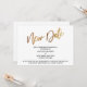 A distinção deste conjunto se deve à fonte moderna de escrita manual utilizada para as frases de destaque. Nesta peça, a fonte manuscrita foi usada para criar um gráfico simples que diz "Nova Data", grande e em negrito. O gráfico foi aprimorado com um efeito de ouro liso falso-metálico. A redação no meu texto de espaço reservado é voltada para um casamento que está sendo adiado, mas se o seu evento for cancelado, este design também pode atender a essa necessidade. Use os campos do modelo para adicionar seus detalhes pessoais e tornar este design moderno e único. O fundo pode ser alterado para qualquer cor que você preferir. Por favor, entre em contato para qualquer solicitação especial ou para assistência de personalização. // 105 //