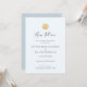 Este simples, minimalista e moderno cartão de anúncio de novo plano de casamento apresenta um monograma em um círculo dourado falso com letras em script cinza escuro sobre um fundo azul pálido. O verso apresenta um fundo azul poeirento. Você pode encontrar produtos correspondentes na minha loja.