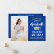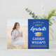 Compartilhe a alegria de uma formatura do ensino médio ou faculdade com esses anúncios personalizados em azul real, dourado e branco. (DICA DE POSICIONAMENTO DA IMAGEM: Uma maneira fácil de centralizar uma imagem exatamente como você deseja é cortá-la antes de fazer o upload para o site da Zazzle.) Este modelo é simples de personalizar com qualquer texto de sua escolha, como detalhes do convite da festa, nomes dos pais, honrarias especiais, título do diploma, citação inspiradora favorita, informações de contato do graduado, planos de educação futura ou novo cargo. Se houver algum texto indesejado, basta excluí-lo. O design apresenta um fundo azul ombre, um boné de formatura em folha dourada, caligrafia estilizada manuscrita, tipografia minimalista moderna e uma foto de sua escolha, como uma foto de formatura ou imagem da cerimônia de formatura. Por favor, note que o dourado é uma cor impressa, não folha metálica. Esses cartões de anúncio de formatura são uma maneira moderna e elegante de compartilhar a celebração do seu dia