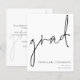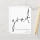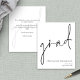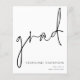 Um orçamento com preço menor (4,5 x 5,6”) em semi-brilho, que é um papel cartão de 110 gsm, semelhante em espessura a um cartão-postal. POR FAVOR, OBSERVE que há UM por folha. Envelopes são um extra opcional e são ligeiramente maiores que o tamanho do cartão. Orçamento de Roteiro Anúncio de Graduação Este simples design monocromático para anunciar as notícias do seu graduado tem um estilo de letra manuscrita informal para o cabeçalho principal, graduado, e uma tipografia fácil de personalizar na parte inferior direita com seus detalhes e também sua mensagem no verso.
