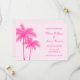 Anuncie o seu casamento na praia com estilo com este anúncio de salvar a data do casamento da moda com palmeira rosa! Personalize facilmente com as suas informações. Selecione o botão personalizar para alterar o estilo, cor e tamanho da fonte.