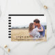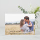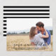 Elegante anúncio de salvar a data com foto apresentando caligrafia rústica e listras na parte de trás.