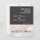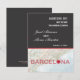 Cartão elegante e moderno de salve a data. Perfeito para um casamento de destino baseado em Barcelona, Espanha. Apresenta um mapa de Barcelona com o Mar Mediterrâneo. O nome da cidade tem um coração dentro da letra "O". Design sofisticado perfeito para um casal global e moderno. Adicione sua própria redação ou encomende como mostrado.