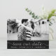 Anúncio de foto de salve nossa data caprichoso e feminino com letras brancas delicadas em fundo preto. Outras cores e itens semelhantes estão disponíveis.