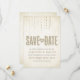 Este lindo design de anúncio de salva data pela The Spotted Olive™ apresenta um belo fundo dourado suave com uma imagem de gemas cintilantes e as palavras "Save The Date" tipograficamente estilizadas e preenchidas com uma imagem de purpurina dourada. POR FAVOR, NOTE: ESSE DESIGN APRESENTA APENAS UMA IMAGEM IMPRESSA DE PURPURINA; NÃO HÁ PURPURINA FÍSICA USADA OU INCLUÍDA; NÃO HÁ EMBELEZAMENTOS. ESTE É UM CONVITE IMPRESSO PLANO. Copyright 2013-Atual | The Spotted Olive™ | Todos os Direitos Reservados
