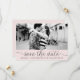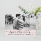Anúncio de save the date fotográfico caprichoso e feminino com letra miúda preta em fundo rosa bege. Outras cores e itens semelhantes estão disponíveis.