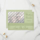 Quer esteja planejando um casamento com tema irlandês ou simplesmente aprecie a beleza dos nós celtas, este anúncio de casamento "save the date" é a maneira perfeita de informar seus amigos e familiares sobre o seu casamento. Este cartão de anúncio de casamento personalizado com foto apresenta um padrão de nó de amor celta em verde-sage sobre um fundo verde mais claro. Você pode personalizar este cartão "save the date" com sua própria fotografia e texto na página de pedido do produto