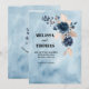 Convite/anúncio de save the date minimalista de aquarela azul com arranjo floral azul real. Layout simples e limpo com imagem na parte de trás. Faça upload de sua própria imagem ou foto para torná-lo único. Altere as fontes, cores e textos. Com a opção de baixar e enviar seu anúncio eletronicamente.