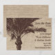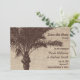 Anuncie seu casamento na praia com estilo com este anúncio de save the date de casamento rústico de árvore de palmeira em sacaria! Personalize facilmente com suas informações. OS DESENHOS SÃO GRÁFICOS IMPRESSOS PLANOS -- NÃO É SACARIA REAL.