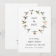 Cartão de Anúncio de Save the Date de Casamento com Beija-flor com várias espécies de beija-flores nativas da América do Norte em um fundo branco.