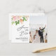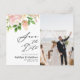 Cartão de Anúncio de Save the Date de Casamento com Foto e Letra Elegante com Folhagem de Rosa Rosa. Deixe sua família, amigos e colegas saberem que você definiu uma data para a celebração do seu casamento com este cartão de convite de save the date de casamento elegante, sofisticado e moderno. Todos os textos estão pré-organizados para você personalizar fácil e rapidamente com seus próprios detalhes.