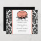 Anuncie seu casamento futuro com nossos cartões de anúncio de Save The Date com um lindo padrão de damasco preto e branco com uma tarja coral e uma moldura oval com 2 pássaros e galhos. Basta adicionar as informações do seu casamento e você estará pronto! Selos postais e selos de envelope correspondentes disponíveis em nossa loja