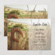 Este anúncio de casamento Save the Date apresenta uma cerca com uma ferradura rústica em um cenário charmoso de fazenda rural.