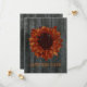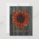 Anúncios de Save The Date de casamento com um fundo de madeira de celeiro na frente e atrás. A frente apresenta um girassol que parece ter sido pintado na madeira do celeiro. Personalize o texto na frente e atrás. Procure por convites correspondentes na Jill's Paperie.