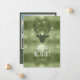 Este Cartões de foto de Natal moderno apresenta flocos de neve e uma silhueta de galhadas em verde-escuro sobre um fundo de efeito texturizado em tons de verde-musgo. O texto opcional "Feriados Felizes" na frente e um modelo foram fornecidos para adicionar sua foto e mensagem pessoal no verso. Procure ID861 a ID864 para ver opções de cores adicionais e outros produtos nesta tendência, conjunto de design de Natal.