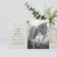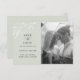 Delicado galhos de folhas de tinta botânica branca e tipografia elegante, casamento exceto cartão com fotos de data. Recursos da placa, fundo de cor prateado pálido.