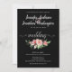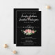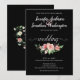 Este design de convite de casamento apresenta uma mistura de elementos contemporâneos e tradicionais, juntamente com um buquê tradicional de rosas cor-de-rosa sobre um fundo preto. O design combina com a Coleção de Casamento Smell the Roses.