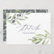 2 ramos de oliveira desenhados à mão em aquarela formam o pano de fundo deste cartão de detalhes de casamento.