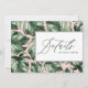 Cartão de detalhes do casamento de folhagem tropical de folha de palmeira em aquarela. Um design elegante, faz parte de uma coleção de casamento minimalista moderna em tendência.