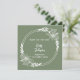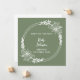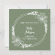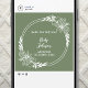 Perfect for parents who love a "Cottagecore" or organic aesthetic, this design features a delicate white line-art floral wreath set against a sophisticated, muted sage green background. The clean typography pairs a modern sans-serif headline with a beautiful, hand-lettered script for your baby's name, creating a balanced and professional look for your big reveal.