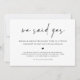 Nós dissemos que sim! Um moderno cartão preto e branco minimalista para anunciar seu casamento ou elopeio aos seus amigos e família.