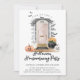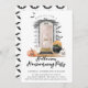 O tema do Dia das Bruxas divertido é convite de festas de lar. Nosso design apresenta nossa própria porta pintada manualmente, rosa d'água, com colunas brancas. Acentuado com cinzas ao lado, uma varanda de madeira natural, e um boo preto e branco! A frente da casa é decorada com abóboras de Halloween, teias de aranha, morcegos e pote de flores de caldeirão preto. Personalize com seu novo número da casa na frente da porta, juntamente com os detalhes da festa. A parte de trás do convite de Halloween apresenta um padrão de morcego divertido. Todas as ilustrações são obras de arte originais pintadas manualmente pela Moodthology.
