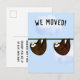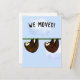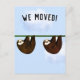 Anúncio de mudança criativo com dois bichos-preguiça de desenho animado e a divertida linha 'nós nos mudamos'.