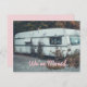 Mostra um reboque branco e velho e "Nós mudamos". Personalize e personalize o novo endereço e informações de contato. A cor de fundo é rosa e também pode ser personalizada. Design divertido para tornar uma mudança exaustiva mais humorística. Para a grande mudança para uma nova casa, condomínio, casa de campo, cabana, rv, chalé, casa móvel ou, sim, um reboque.
