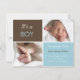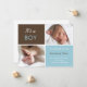 O anúncio do Baby Boy com um design de bloco colorido em azul e castanho. Carregue as suas fotografias no espaço fornecido e introduza as informações do seu bebê.