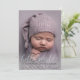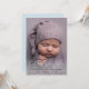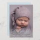Anuncie sua nova chegada maravilhosa à sua família e amigos com este cartão com fotos bonito e mínimo. Olá mundo em texto elegante está em azul na frente com bolinhas azuis e brancas no verso. Muito fácil de personalizar com seus detalhes pessoais.