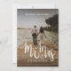 O novo Sr. e Sra.! Parabéns da sua aventura romântica de casamento. Compartilhe as notícias da elopeia com sua família e amigos com este anúncio personalizado de "nós fugimos" e comemoração de casamento poste. O branco "Sr. & Sra." é escrito digitalmente em estilo caligrafia moderno e apresenta um belo e elegante (&). Adicione seu novo sobrenome ao cobrir da página (lembre-se de escanear as letras para uma camada extra de elegância) e compartilhe sua foto favorita do dia do casamento. Personalize as costas com uma mensagem própria. Se você não estiver fazendo nenhuma celebração de casamento poste, remova o texto adicionando um espaço aos campos de texto personalizados ou remova-o completamente quando você personalizar o cartão de acordo com seu gosto!