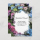 Anuncie seu casamento de festas de jardim privado ou elopeamento secreto com o elegante Casamento de Quadros de Flores Hydrangea / Anúncio de Elopement. Este bonito anúncio personalizado de casamento floral / elopemento apresenta uma fotografia floral de cor azul, rosa e branca, florescendo com folhas verdes.