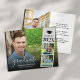 Anuncie a formatura do seu filho com este cartão de anúncio de graduação de na moda de 4 fotos orçamentária. Personalize facilmente com suas próprias informações para torná-las exclusivas.