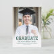 Anúncio de graduação com fotos personalizadas na frente e no verso. A palavra "Formando" aparece em uma tipografia verde ousada com um olhar esportivo ideal para o atleta estudantil, com o nome do formando, a escola e o ano de graduação abaixo em sans serif font. A parte traseira apresenta uma foto horizontal, com espaço para detalhes sobre a conquista do seu formando e planos futuros em texto branco sobre fundo verde. Uma boa escolha para segundo grau ou formandos.