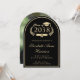 Anúncio clássico de formandos preto em forma de arco que apresenta "Classe de" numa ilustração dourada de uma coroa de louros que incorpora um boné e um diploma de formando, e o nome do formando numa elegante escrita dourada. Adicione sua escola, major, honras ou planos futuros em uma simples tipografia de ouro. A foto do formando preenche a parte traseira da placa.