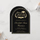 Anúncio formal em forma de arco clássico com formandos preto apresentando a "Classe de" dentro a ilustração dourada de uma coroa de louros que incorpora um boné de formando e um diploma, e o nome do formando em um roteiro elegante de ouro leve. Adicione sua escola, major, honras ou planos futuros em uma simples tipografia de ouro.